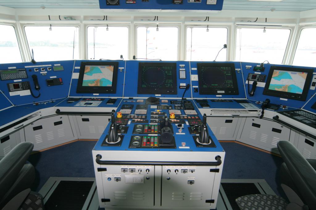 Данная группа аппаратуры позволяет командному составу ориентироваться на местности, прокладывать маршруты и коммуницировать с другими плавсредствами. К электронавигационным устройствам относятся приборы, которые определяют курс и скорость движения судна. В их числе можно выделить автопрокладчик курса, авторулевой, гирокомпас, электрический лаг, а также системы, принцип работы которых основывается на гидроакустике – это эхолоты, пеленгаторы и локаторы. Функции определения положения судна в режиме электронной картографии выполняют навигационные приборы наподобие радиомаяков, радиолокаторов и радиодальномеров. Весь комплекс данной аппаратуры находится в ходовой рубке или недалеко от нее на мостике. Не уходит в прошлое и классический магнитный компас. Его наличие важно на случай перебоев энергоснабжения или выхода из строя основной электронной навигации.